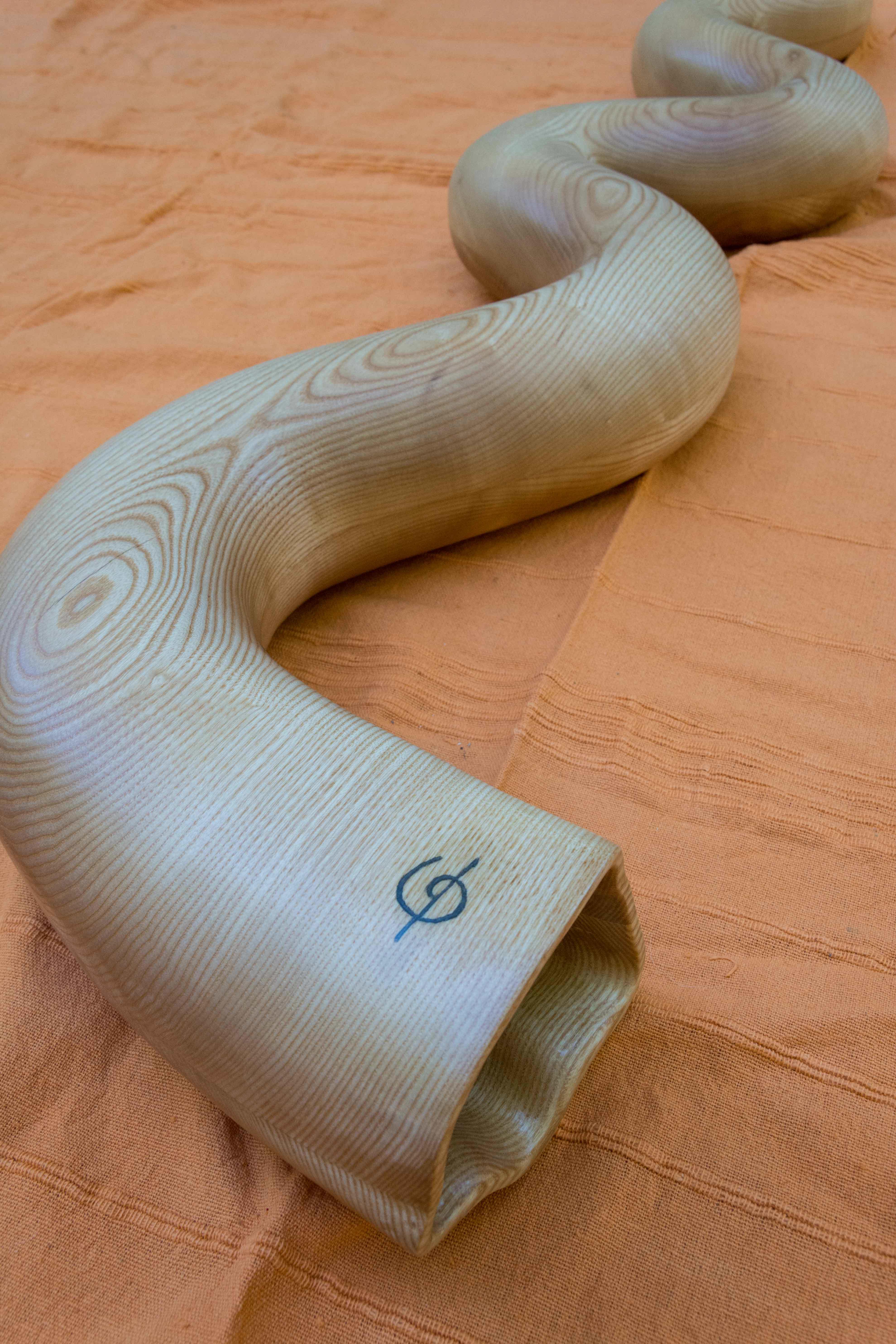 Ce didgeridoo est l'aboutissement de nombreuses recherches et expérimentations pour obtenir un instrument sculpté, courbé, avec un look original sans pour autant faire de compromis sur la qualité sonore et les caractéristiques musicales.